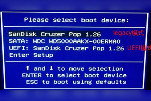 8、電腦畫(huà)面后通過(guò)“↑↓”鍵選擇U盤(pán)選項(xiàng)后回車進(jìn)入電腦店WinPE界面,(如下圖所示,選擇帶有USB字樣的或者選擇自己的U盤(pán)名稱標(biāo)識(shí)(如閃迪u盤(pán):SanDisk Crozer pop1.26)
