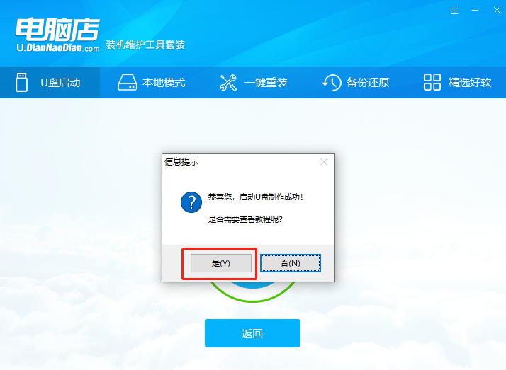 3、等待制作,制作成功后會(huì)有彈框提示,(下面彈窗手動(dòng)點(diǎn)擊“是”提前查看重裝步驟教程)