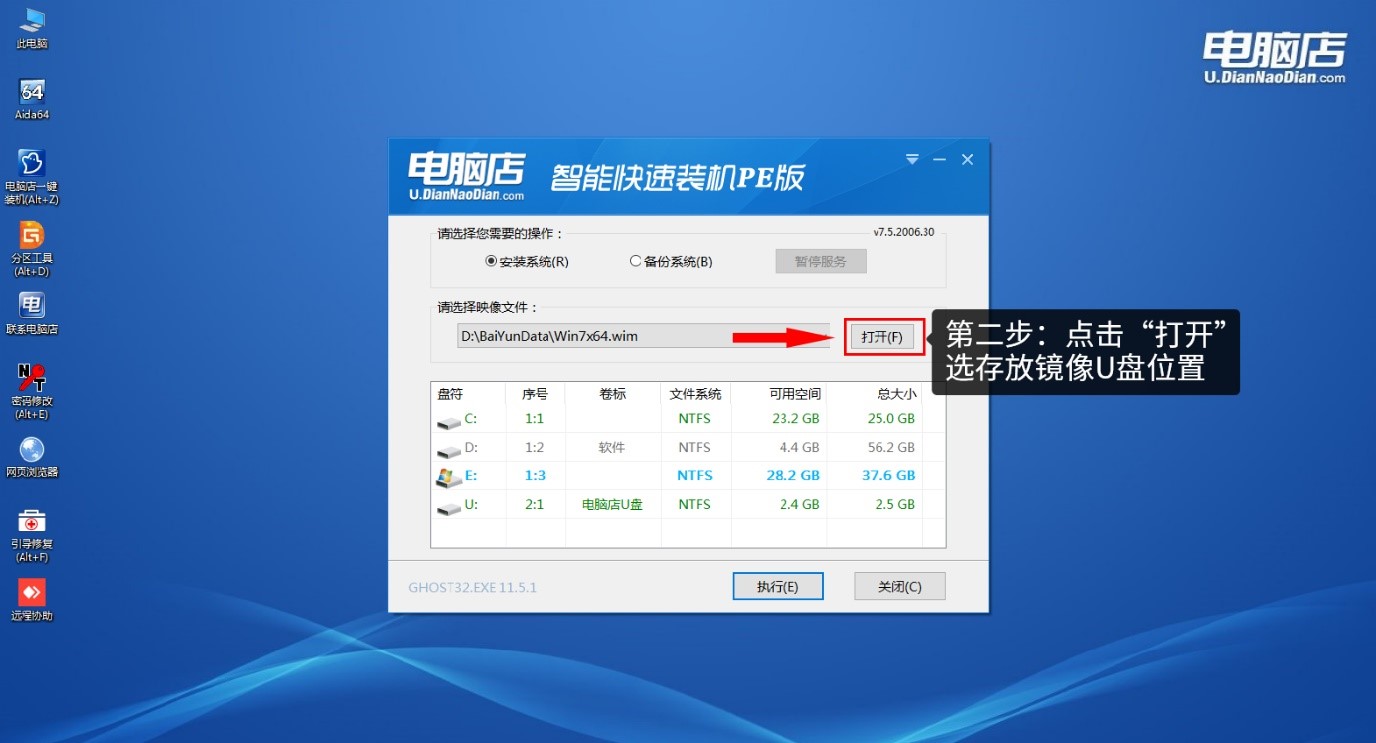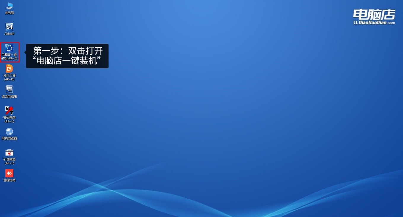 第一步、雙擊打開(kāi)“電腦店一鍵裝機(jī)”
