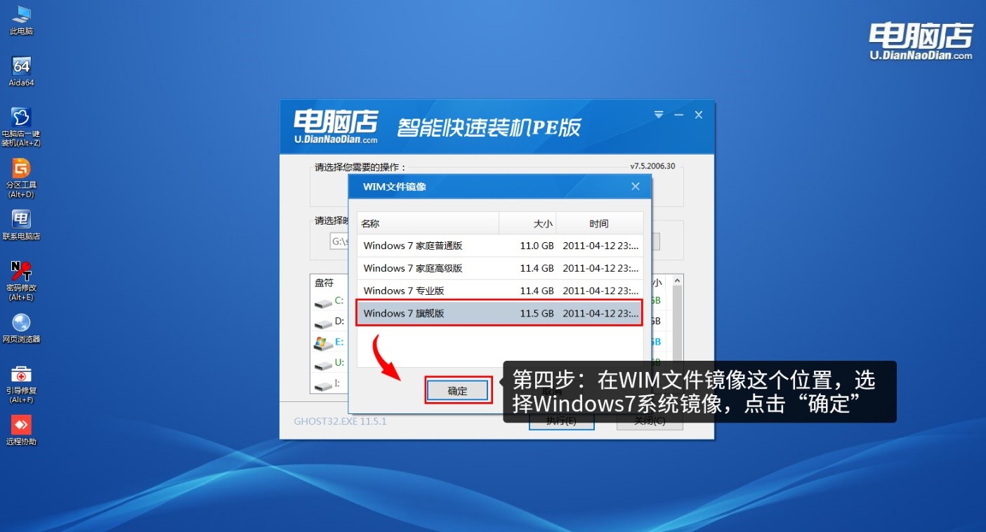第四步、在WIM文件鏡像這個(gè)位置,選擇windows7系統(tǒng)鏡像,點(diǎn)擊“確定”
