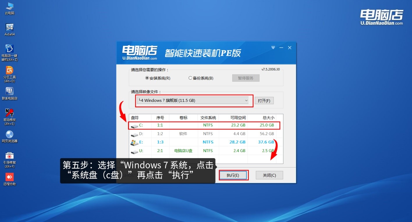 第五步、點(diǎn)擊“系統(tǒng)盤(pán)(這里一般會(huì)默認(rèn)為C盤(pán),就是你選擇用來(lái)安裝系統(tǒng)的盤(pán))”再點(diǎn)擊“執(zhí)行”